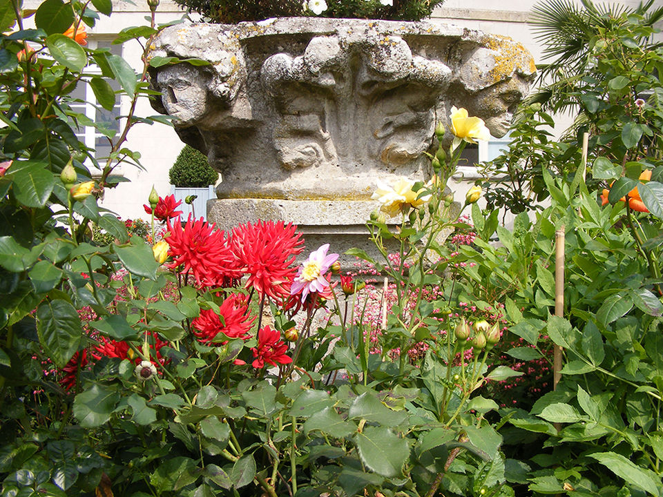 La roseraie, reconstitution de la roseraie classée du temps du Prince Poniatowki, explose de fleurs en juin.